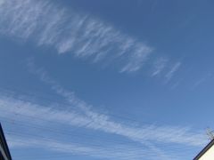 上空に帯状の雲と肋骨状の雲が交差したり横に長く伸びたりでした。